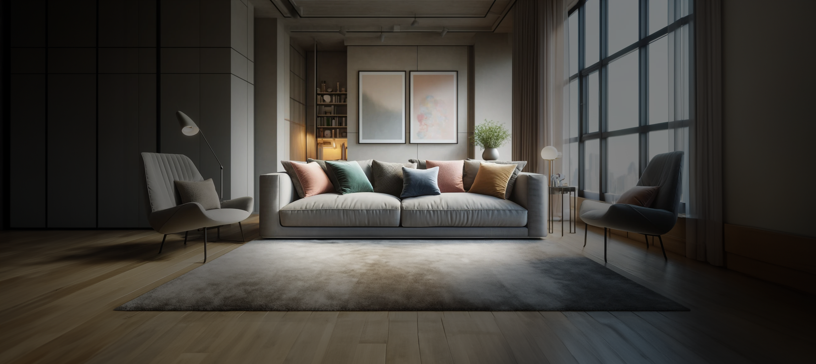 Focused on digital transformation for carpet retailers, this page demonstrates how AR visualization helps customers see textures and dimensions in their own spaces.