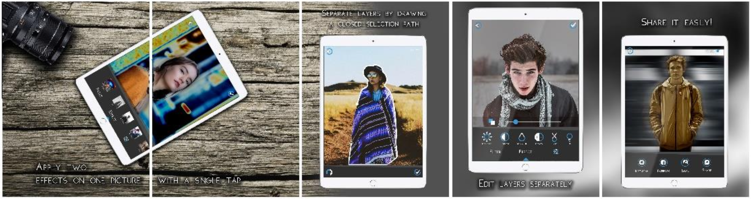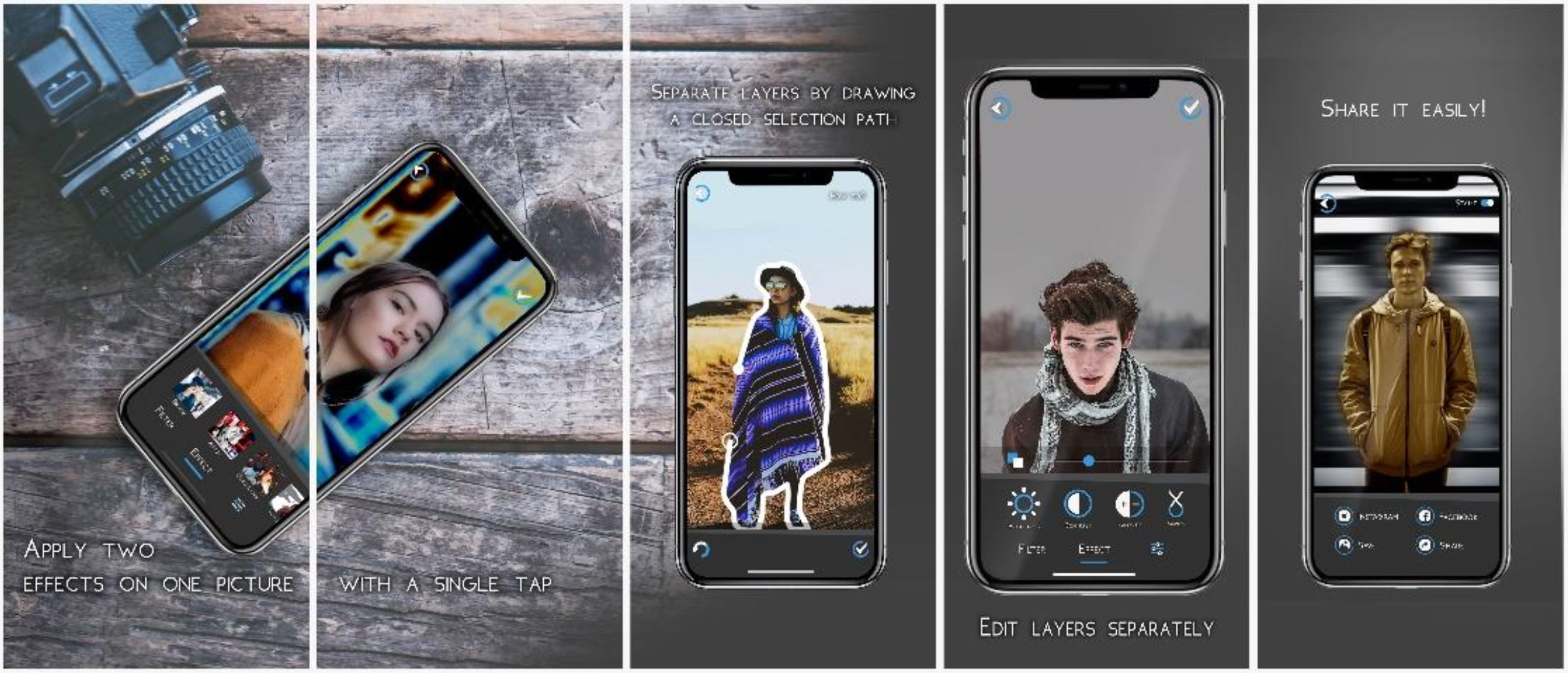 The final result of this project was the successful design, development, and market launch of a mobile photo editing application tailored for iOS. Released in 2016, the app was designed at a time when The concept of simplified, layer-based mobile editing was still emerging.