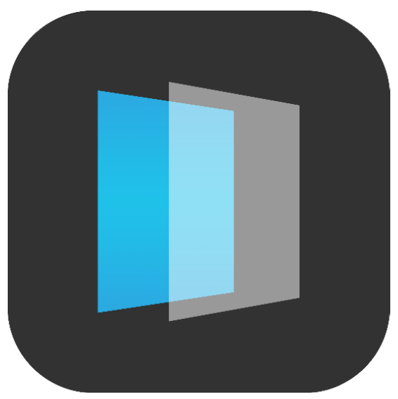 The app's icon is composed of two overlapping rectangular shapes with different levels of transparency and blue hues. This represents the concept of layers in image editing, illustrating the app’s main functionality.
